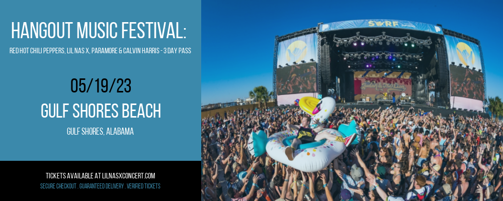 This spring is heating up when one of the best music sensations comes to your neighborhood for a one-night-only concert tour date that you can’t afford to miss. But you don’t have to miss out if you book your tickets to see Hangout Music Festival: Red Hot Chili Peppers, Lil Nas X, Paramore & Calvin Harris – 3 Day Pass live at Gulf Shores Beach in Gulf Shores, Alabama on Friday 19th May 2023. You could join a pack of the best fans in the country to see incredible artists command the stage. You’ll be stunned by special effects and the unstoppable magic of killer music. And let’s not forget that you’ll be dancing with charts-topping hits and fan-favorite music from a packed discography. It’s a tribute to one of today’s hottest musicians, and might be one of the most popular shows of the season. Anyone who’s anyone is going to show up so you don’t want to lose this chance. Tickets are still available but supplies are limited. Tap the buy tickets button below, so you can buy your tickets to see Hangout Music Festival: Red Hot Chili Peppers, Lil Nas X, Paramore & Calvin Harris – 3 Day Pass live at Gulf Shores Beach in Gulf Shores, Alabama this coming Friday 19th May 2023!